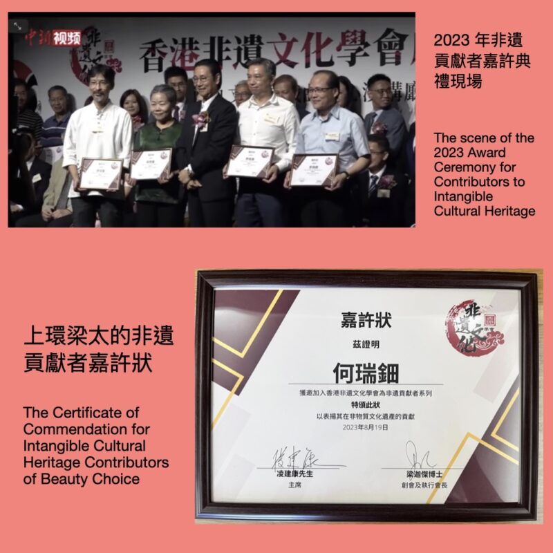 上環梁太線面獲香港非遺文化學會選入非遺貢獻者系列,而表揚其在「線面」這項非物質文化遺產的貢獻。